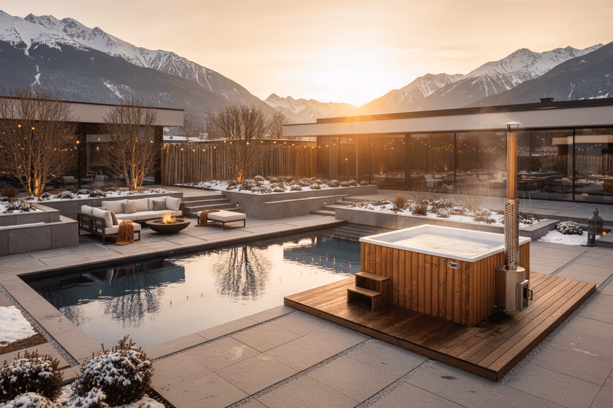 winter verwarm je het water tot een dampend warm bad onder een heldere sterrenhemel. In de zomer gebruik je hem als verkoelende plungepool na een zonnige dag of intensieve training.